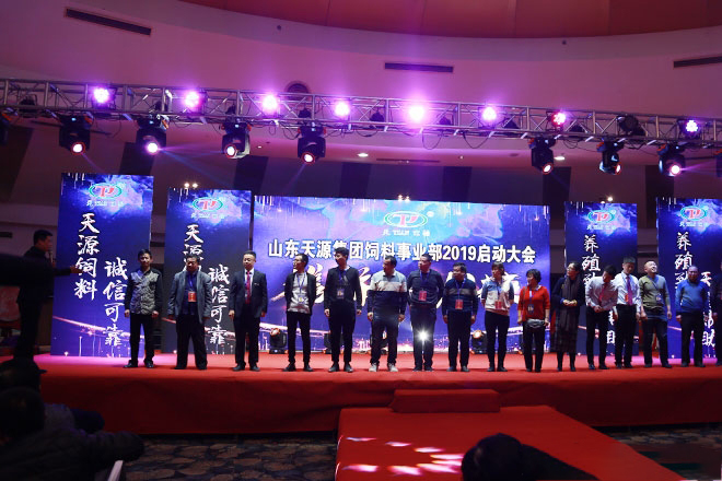 总经理邹玉良为大会开幕致辞,邹总介绍了天源集团对山东畜牧业博览会、山东省养猪技术公益大讲堂、中国猪业山河论坛等活动赞助的情况,介绍了天源的品牌建设成果。在讲话中,邹总表示天源将坚定不移的推进销售渠道网络建设,坚定的支持广大经销商经营,将以更多高质量、高性价比的产品回馈经销商。